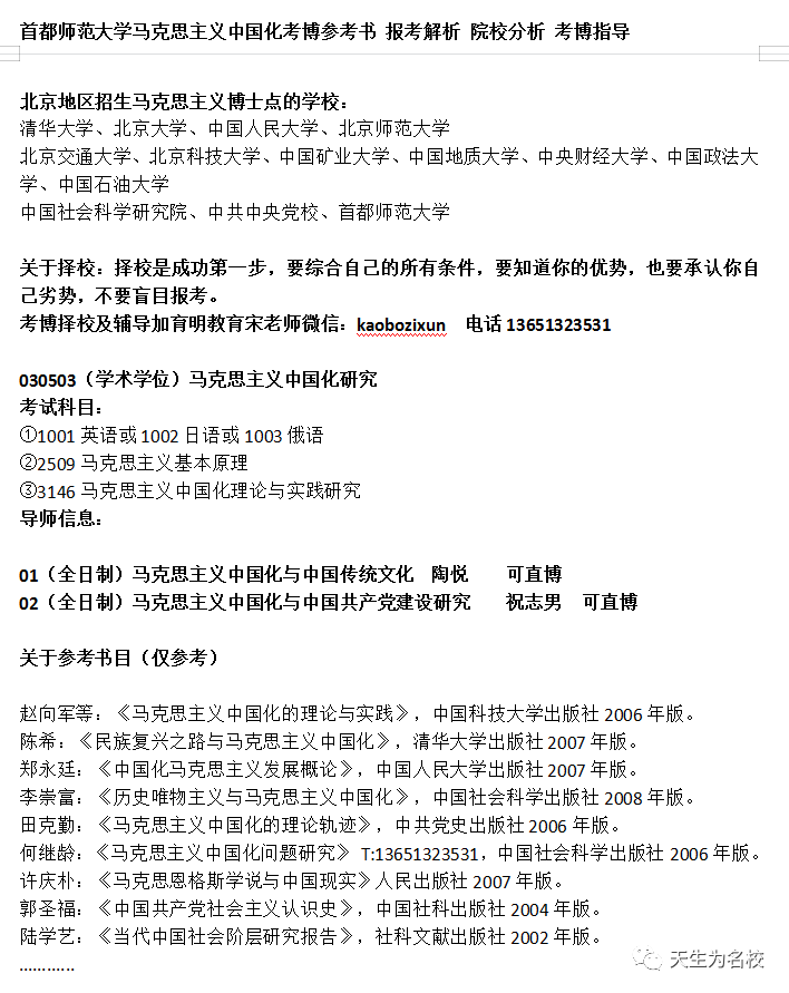 首师大马中化考博:2023年首都师范大学马克思主义中国化考博参考书 报考解析 院校分析 考博指导