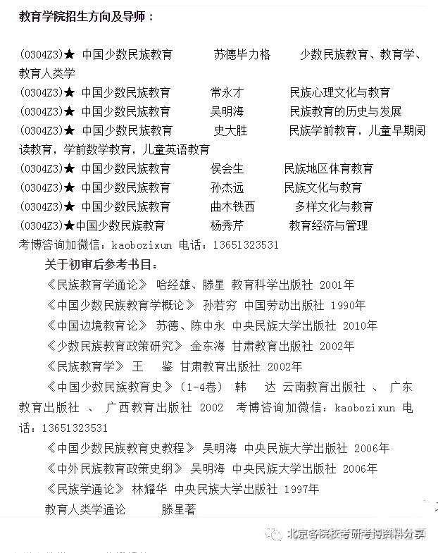 考博真题:2023年中央民族大学少数民族教育考博参考书 考博真题 导师信息 复试信息
