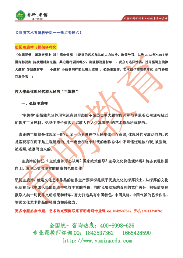 > 艺术热点专题六:弘扬主旋律与提倡多样化
