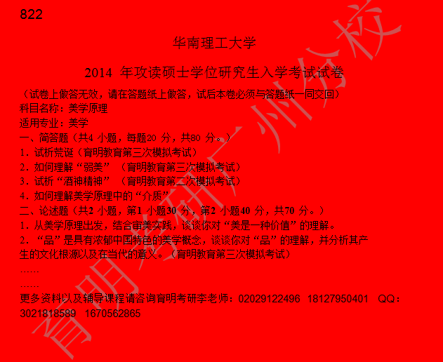 > 2014年华南理工大学美学考研真题(美学原理)