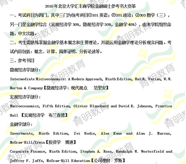 2016北京大学汇丰商学院金融硕士考研参考书大变革