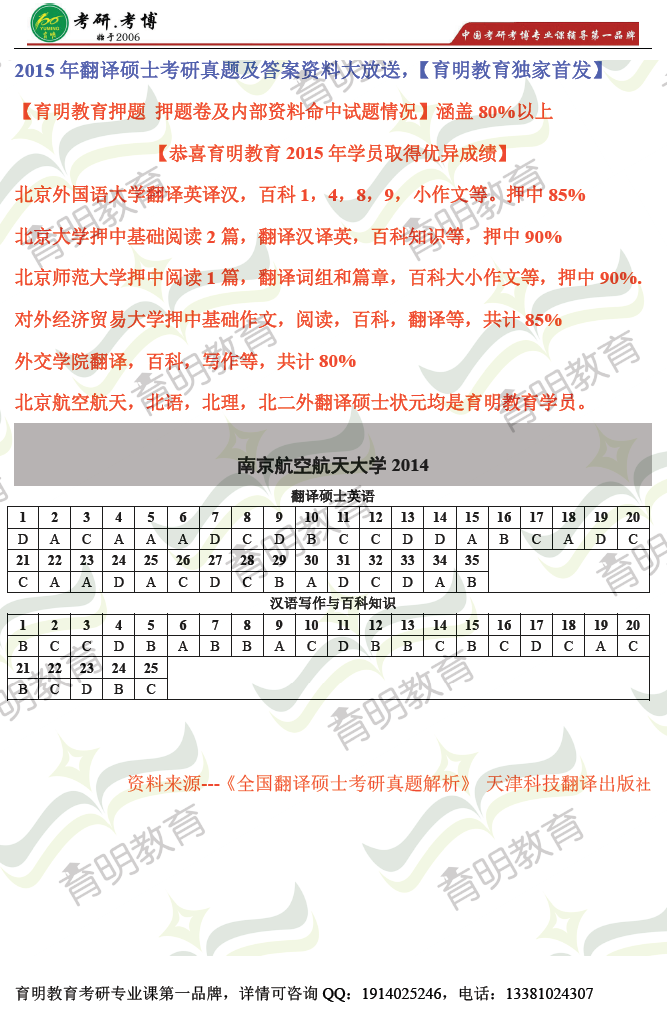 > 2014年南京航空航天大学翻译硕士考研真题答案