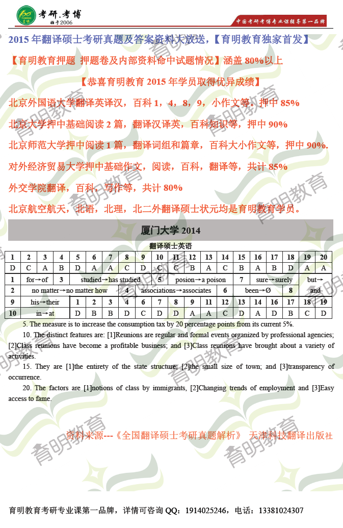 > 2014年厦门大学翻译硕士考研真题及答案解析
