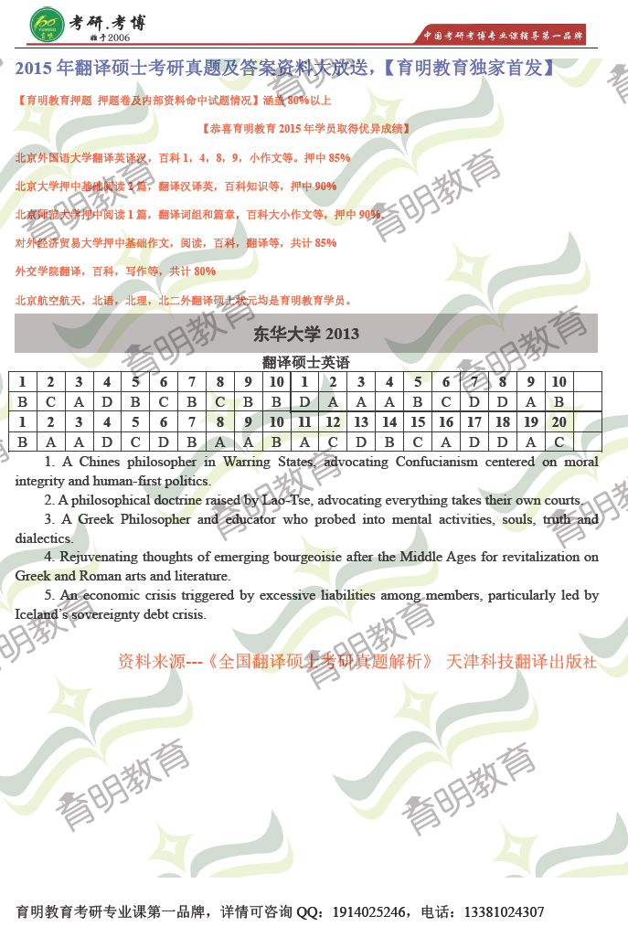 > 2013年东华大学翻译硕士考研真题及答案解析