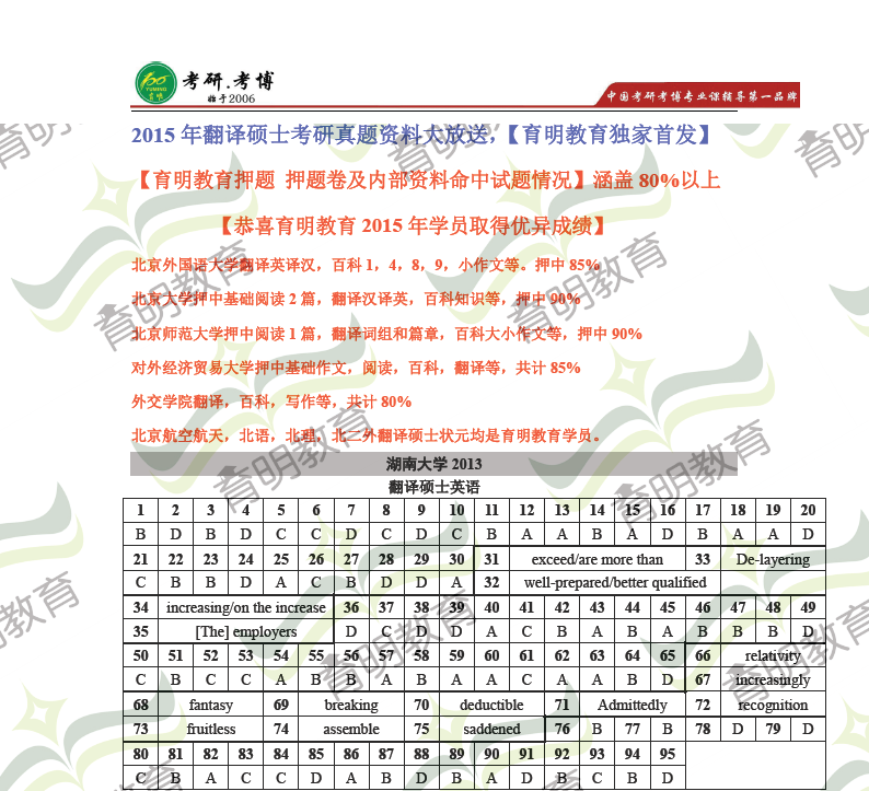 2013年湖南师范大学翻译硕士考研真题答案解析
